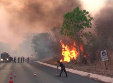 Um incêndio na Serra da Bandeira, em Barreiras, extremo oeste baiano, foi dado como controlado neste domingo (22). Segundo o Corpo de Bombeiros, o fogo, iniciado na última sexta-feira (20), se expandiu no sábado (21), causando estragos (ver aqui). Agora, conforme informaram ao G1, os agentes farão o monitoramento da região no intuito de apagar possíveis focos. Com a intensificação do incêndio no último sábado, o fogo atingiu cabos de fibra ótica, que ficam às margens da BR-242, o que provocou a interrupção do sinal da internet. As chamas também chegaram perto do aeroporto da cidade, levando muita fumaça ao local. Em alguns pontos, bombeiros tiveram que reforçar a sinalização da pista. Nenhum voo foi cancelado.